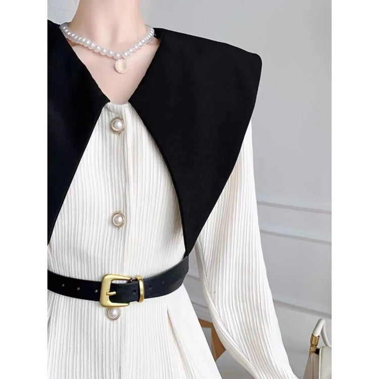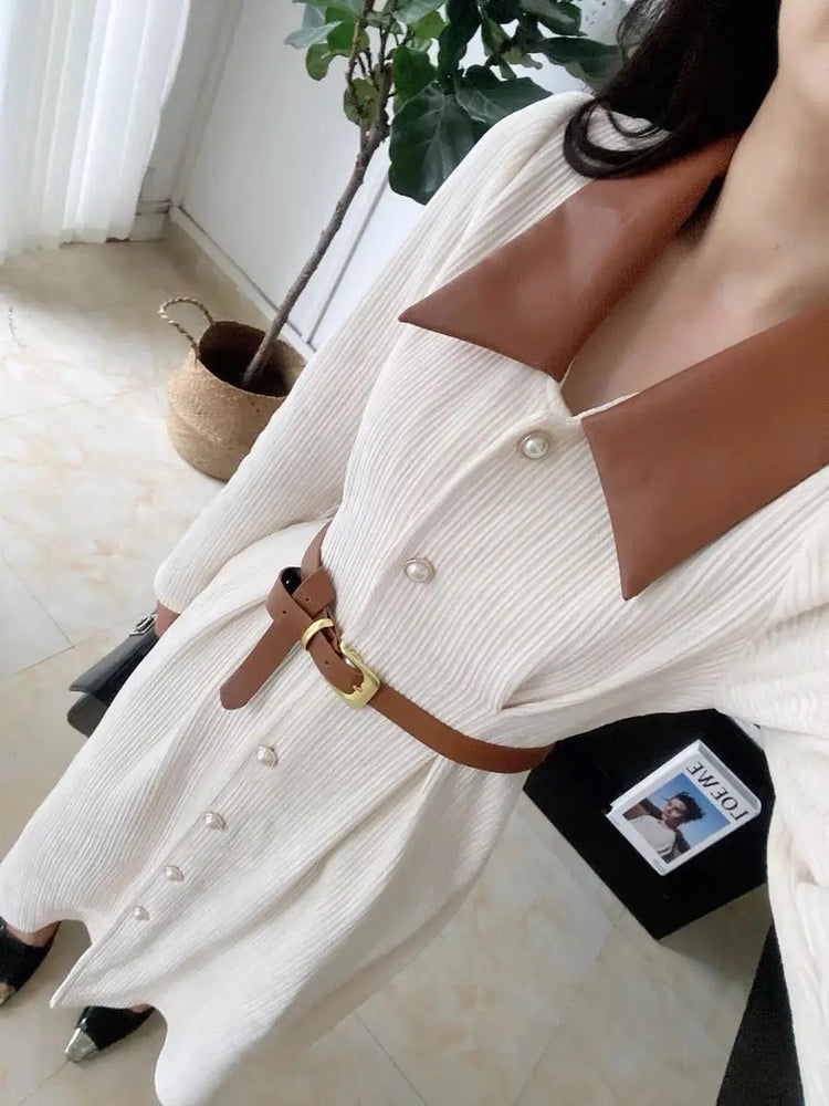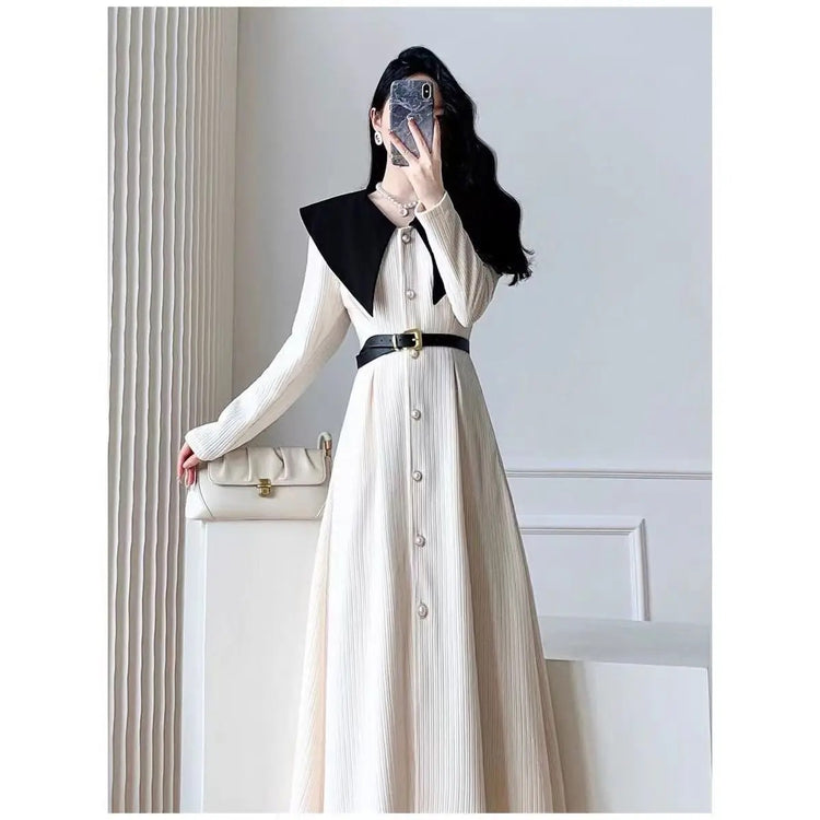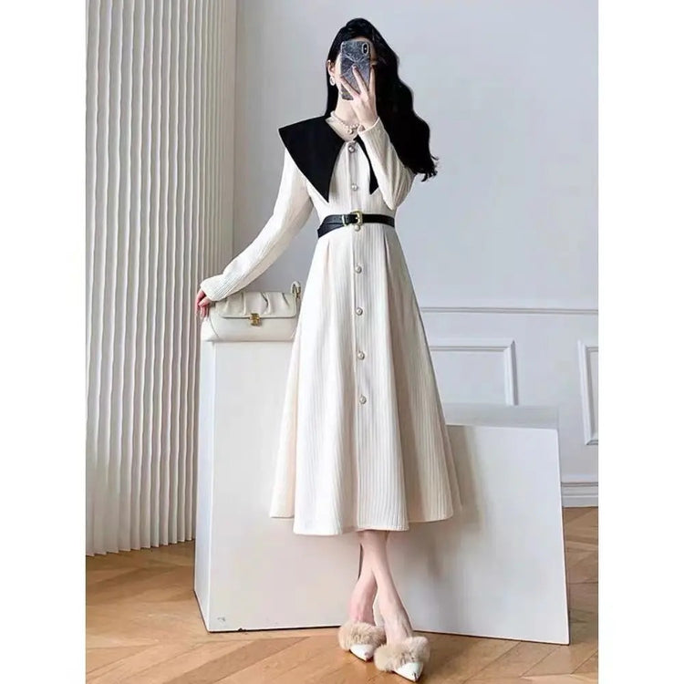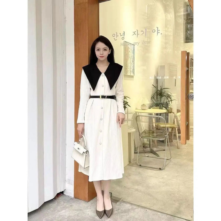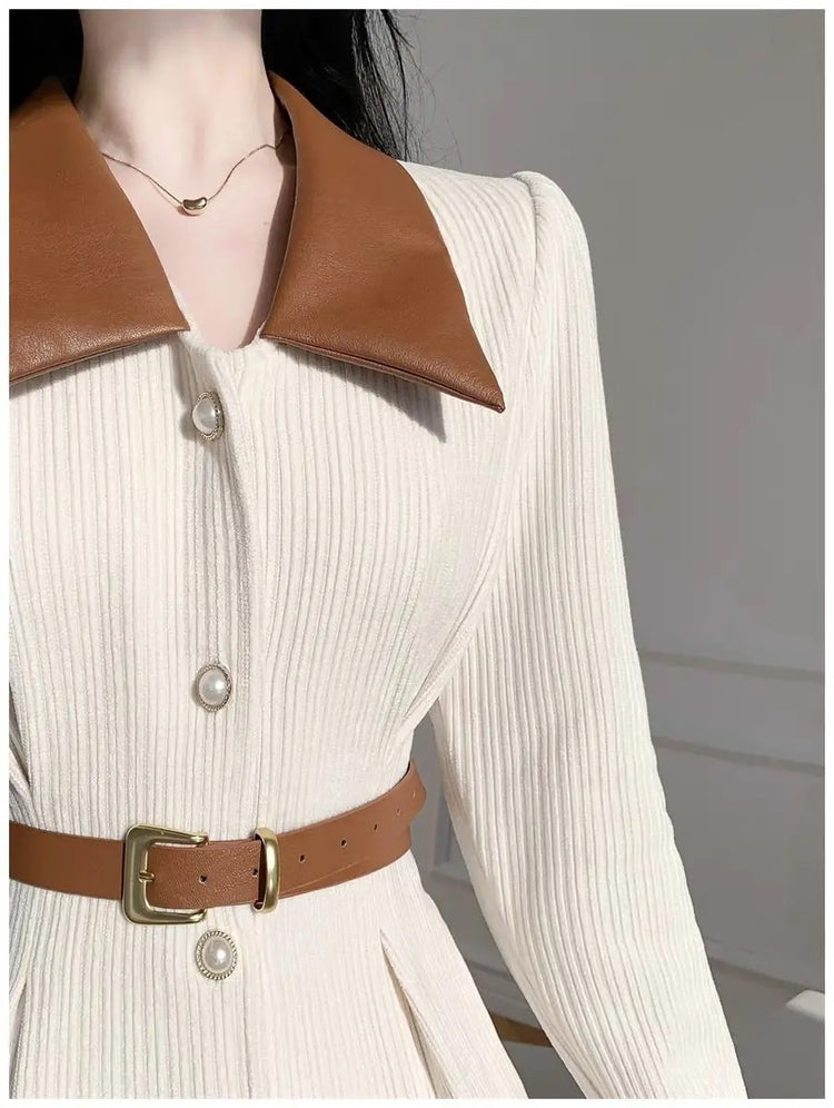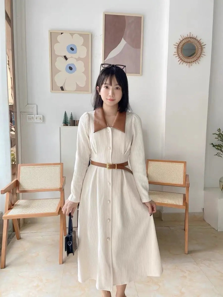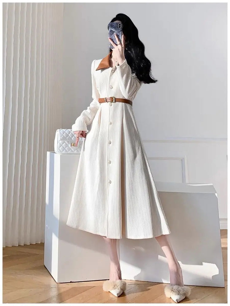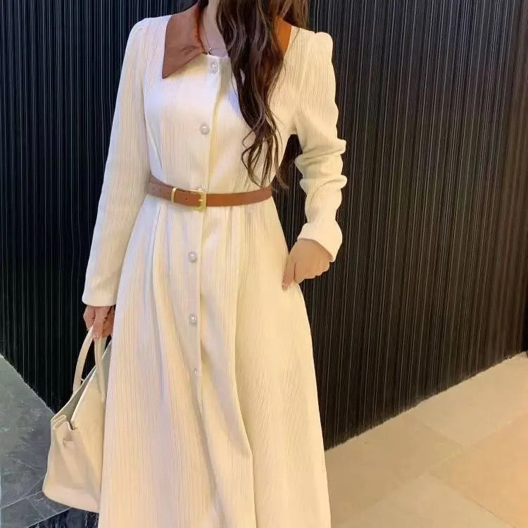 Polo Neck Button Slim Long Sleeve Dress With Belt