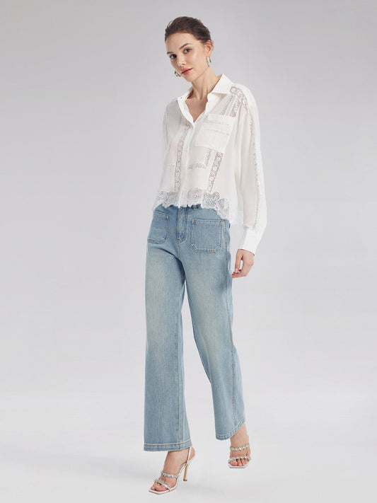 34% İndirimŞık Taşlı Dantelli Kot Pantolon