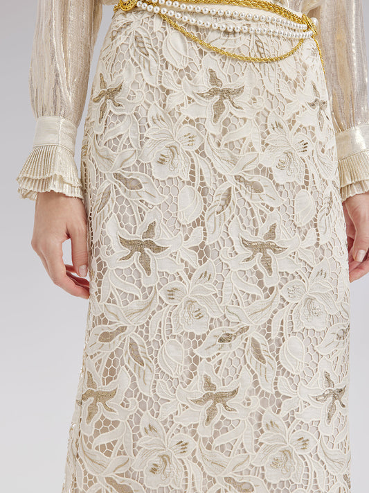34% İndirimÖzel Güpür Dantel Çiçekli Etek