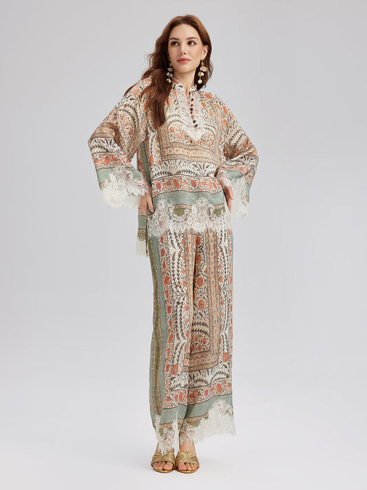 33% İndirimBohem İpek Şal Desenli Pantolon