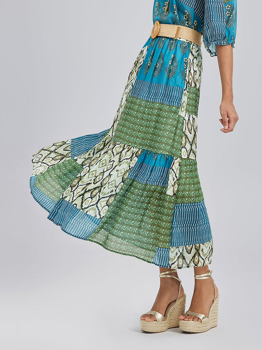 35% İndirimBeli Lastikli Yama İşli Keten Görünümlü Etek