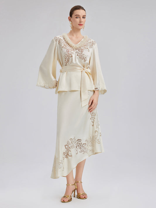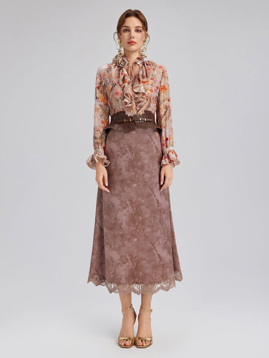 34% İndirimKlasik Romantik Desenli İpek Etek