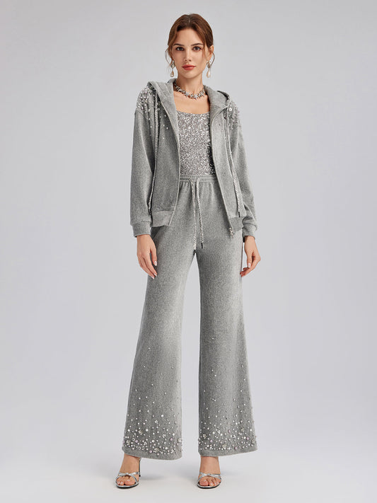 34% İndirimŞönil Fitilli Boncuklu Düz Pantolon