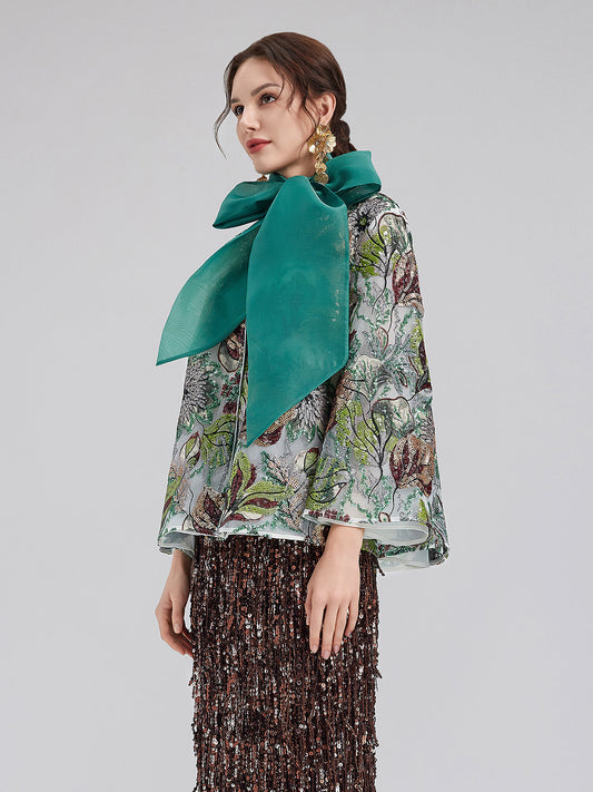 34% İndirimYeşil Pullu Çiçekli Bol Ceket
