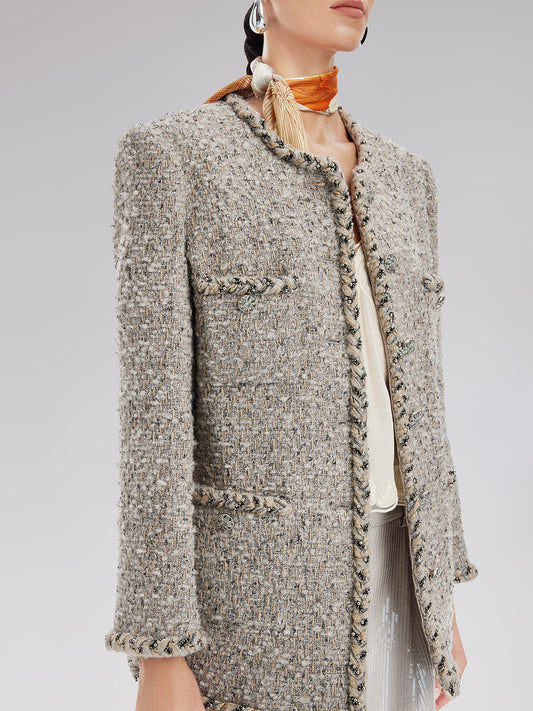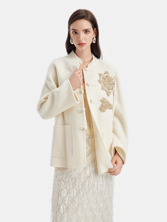 33% İndirim3 Boyutlu Kordon Nakışlı İpek Yün Kısa Ceket