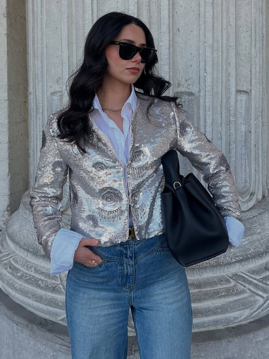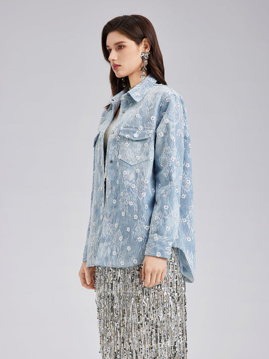 33% İndirimEl İşlemeli Pullu Çiçek Desenli Ceket