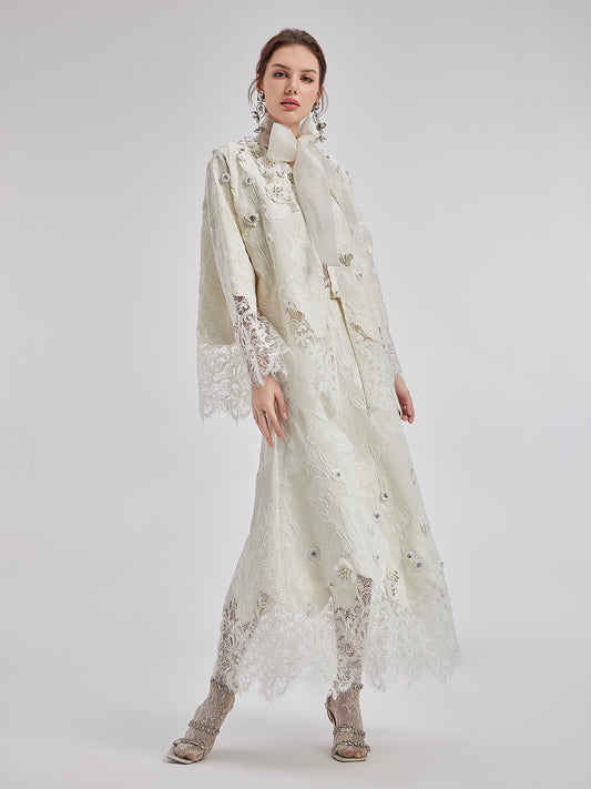 34% İndirimÖzel Boncuklu Dantel Jakar Kaban