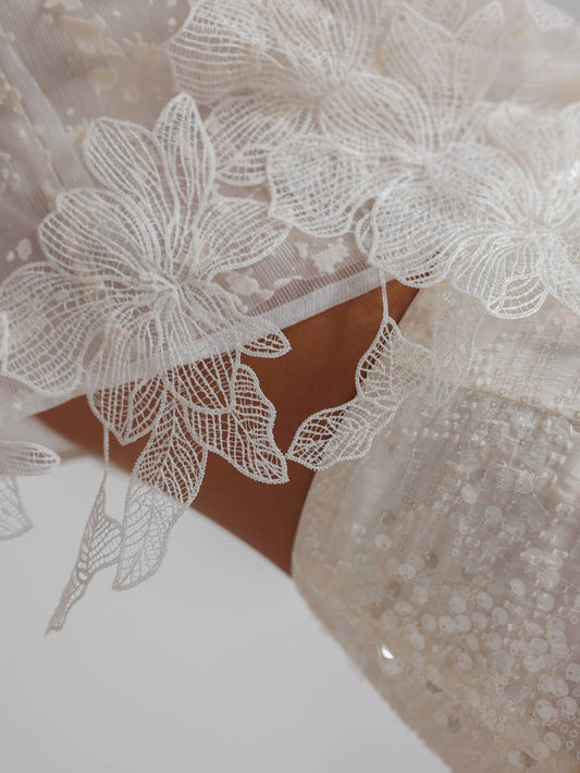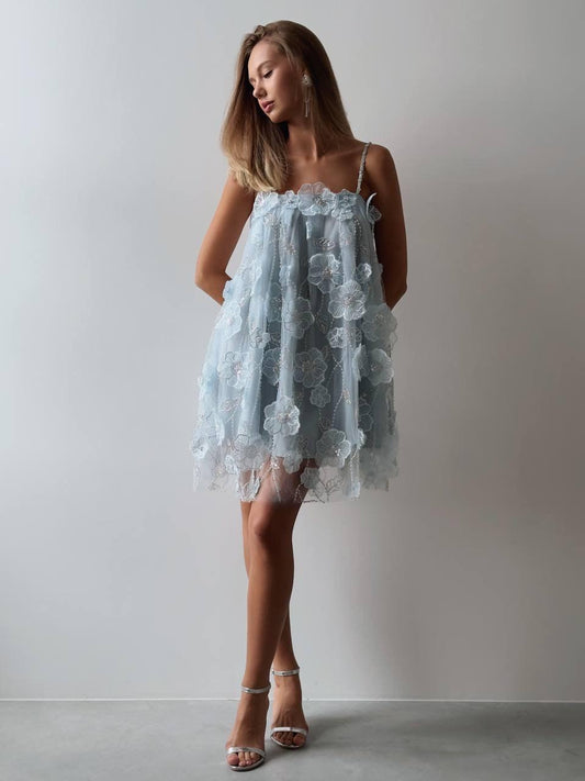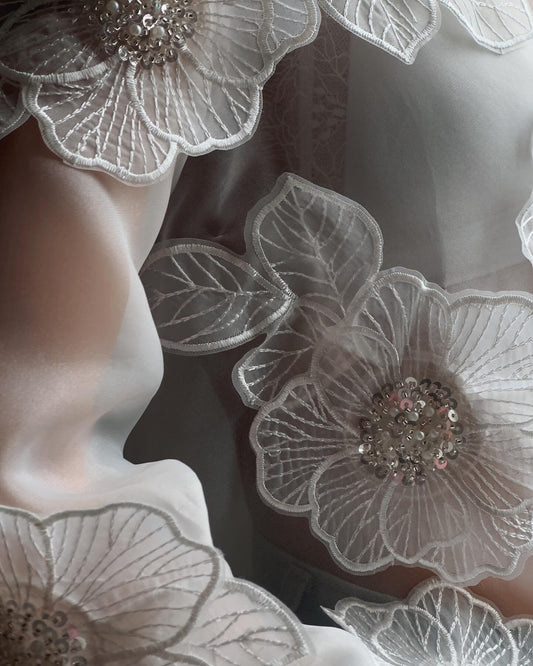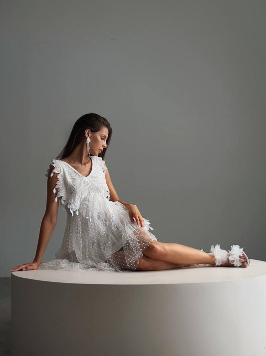 34% İndirimÇiçek Omuz Detaylı Zarif Beyaz Mini Elbise