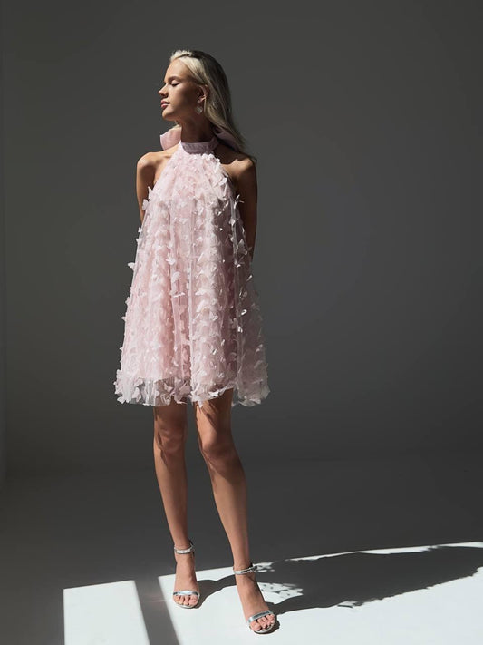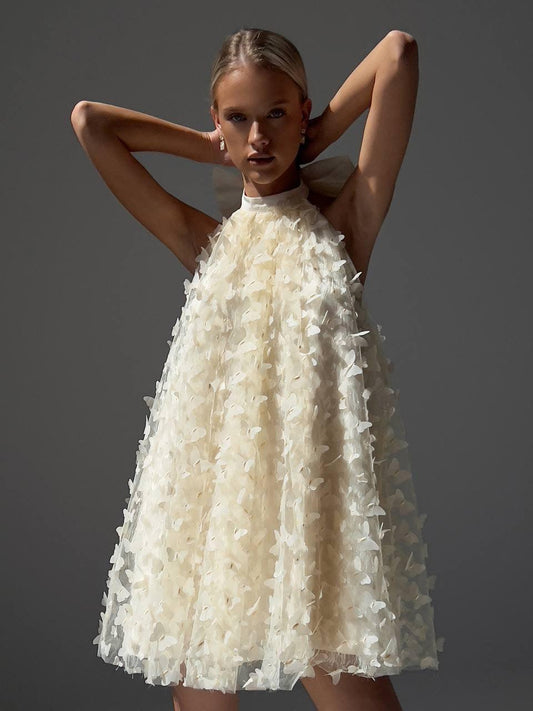 34% İndirimKelebek Aplike Detaylı Zarif Halter Elbise