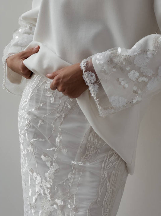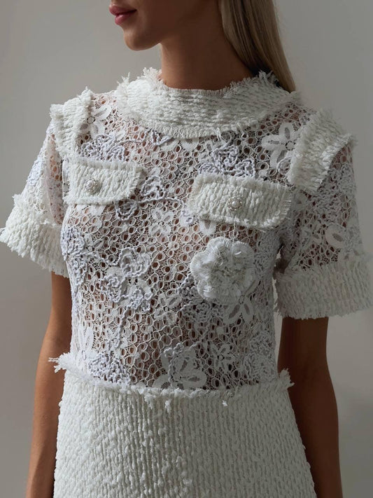 33% İndirimÇiçek Detaylı Beyaz Mini Takım