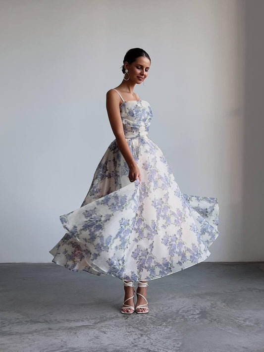 34% İndirimÇiçek Desenli İp Askılı Midi Elbise