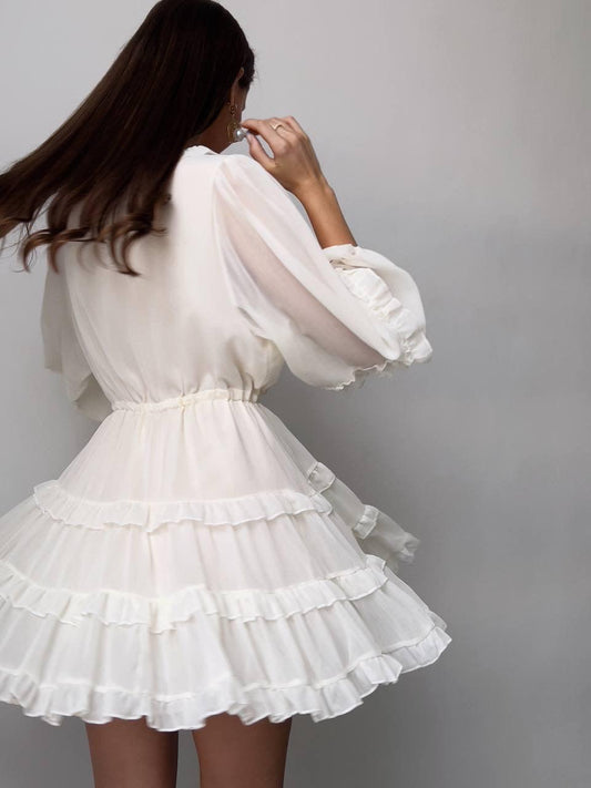 33% İndirimZarif Fırfırlı Beyaz Mini Elbise