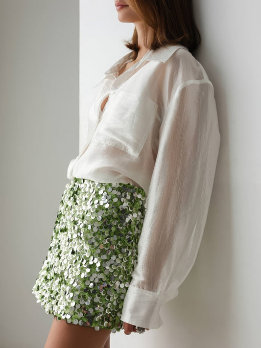 35% İndirimYeşil Payetli Mini Etek