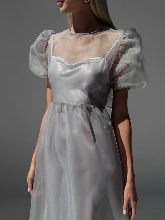 34% İndirimZarif Gri Tül Detaylı Midi Elbise