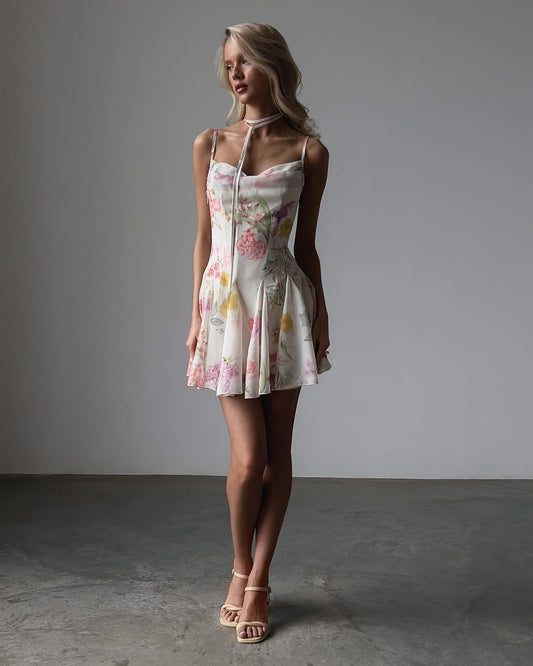 35% İndirimÇiçek Desenli İp Askılı Mini Elbise