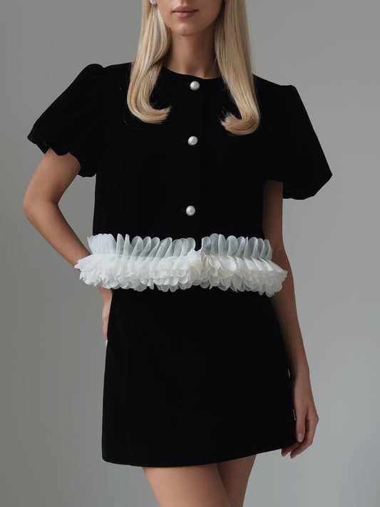 33% İndirimÇiçek Bel Detaylı Kadife Mini Takım