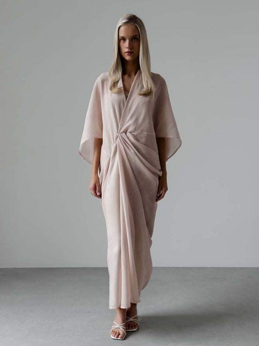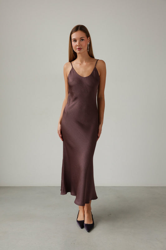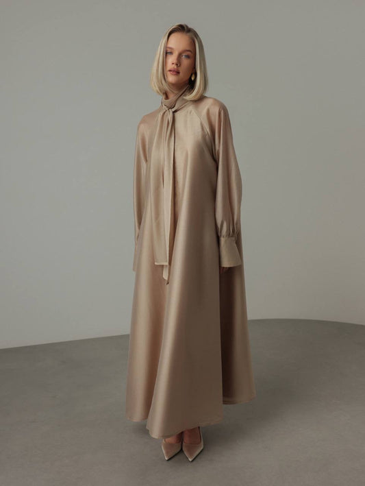 34% İndirimİpek Bağlamalı Yaka Maxi Elbise