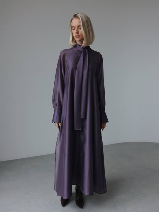 35% İndirimMor İpek Bağlamalı Yaka Maxi Elbise