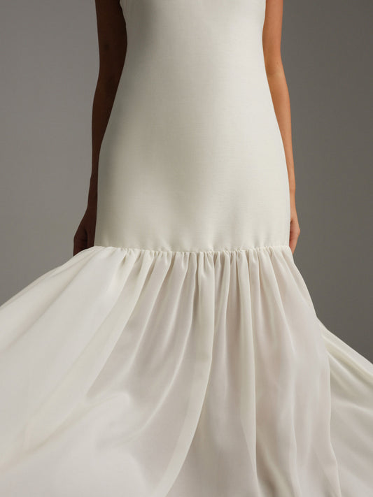 34% İndirimFildişi Bulut Saten Askılı Elbise