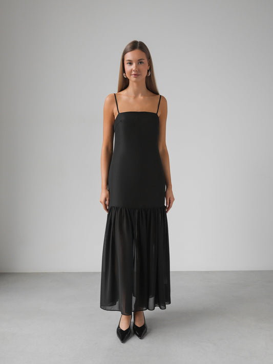 33% İndirimPüsküllü Pullu Uzun Askılı Elbise