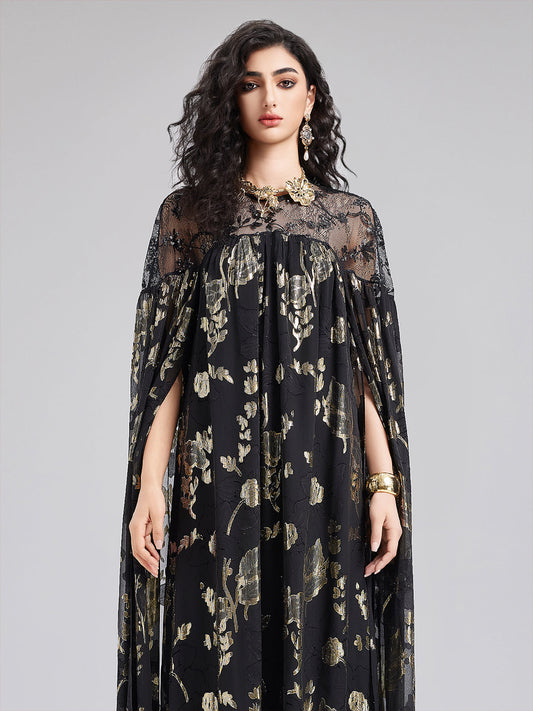 33% İndirimYakma Kadife Altın Gölgeli Desenli Elbise
