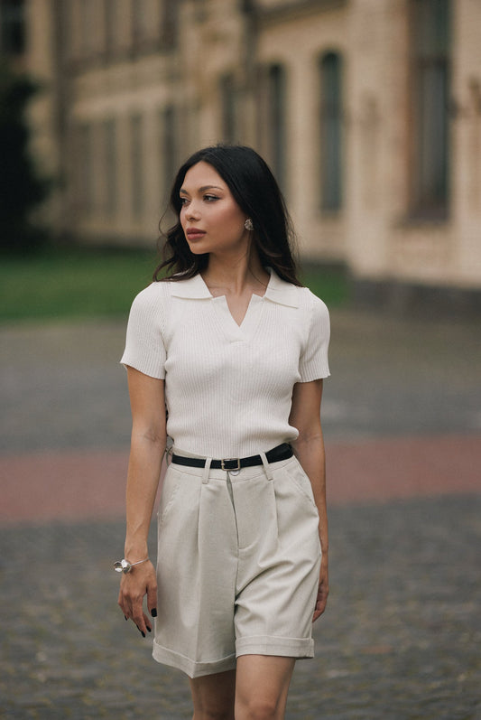 34% İndirimKrem Still Triko Polo Üst