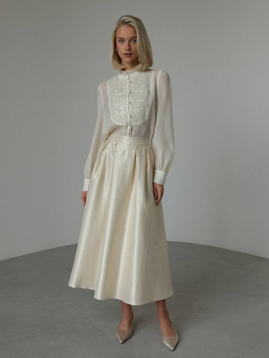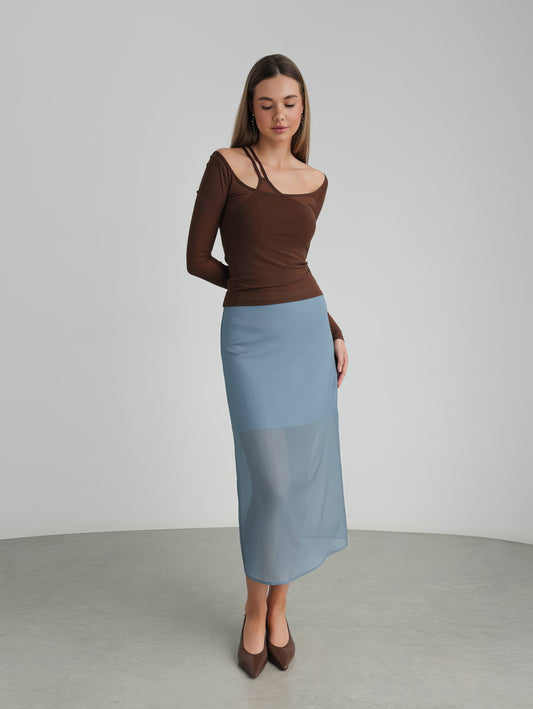 33% İndirimAsimetrik Kesim Açık Mavi Midi Etek