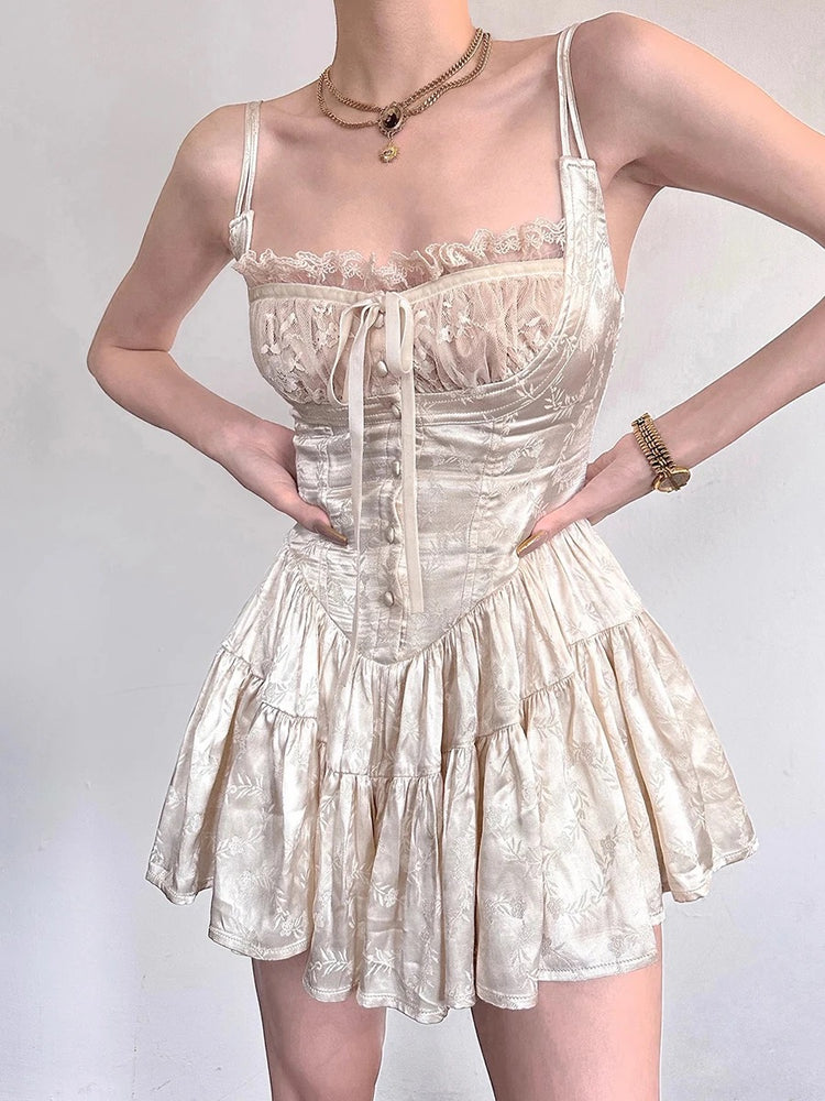 High Quality Fairy Vintage Satin Mini Dress