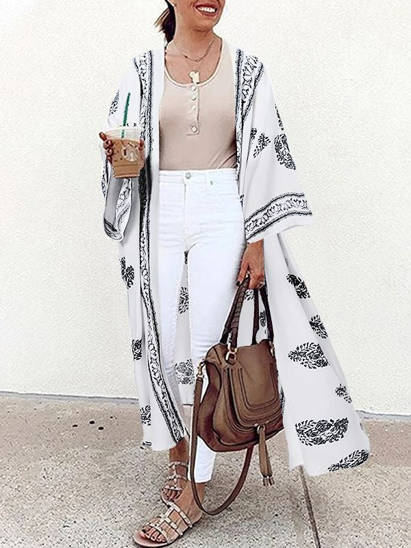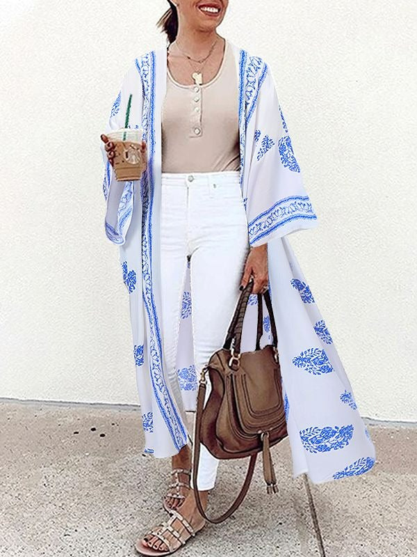 BOHEMIAN FLORAL PRINTED LONG SHIRT KIMONO, SUMMER BEACH CARDIGAN