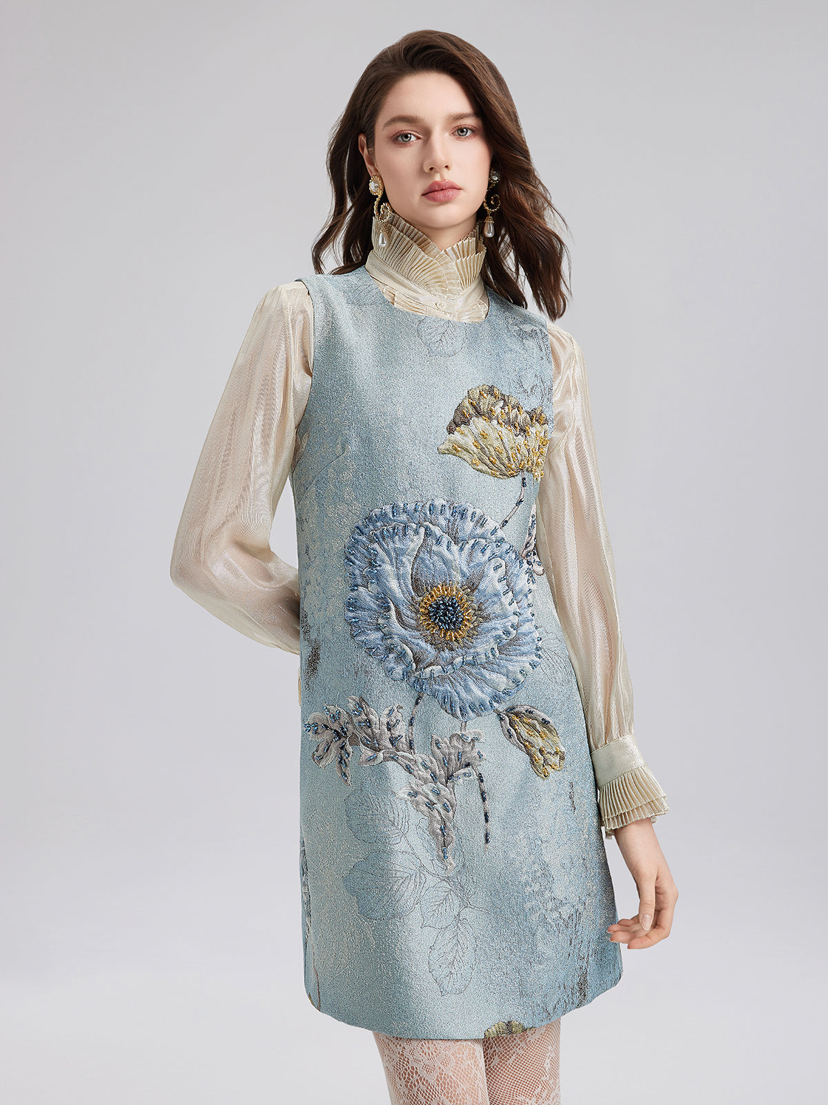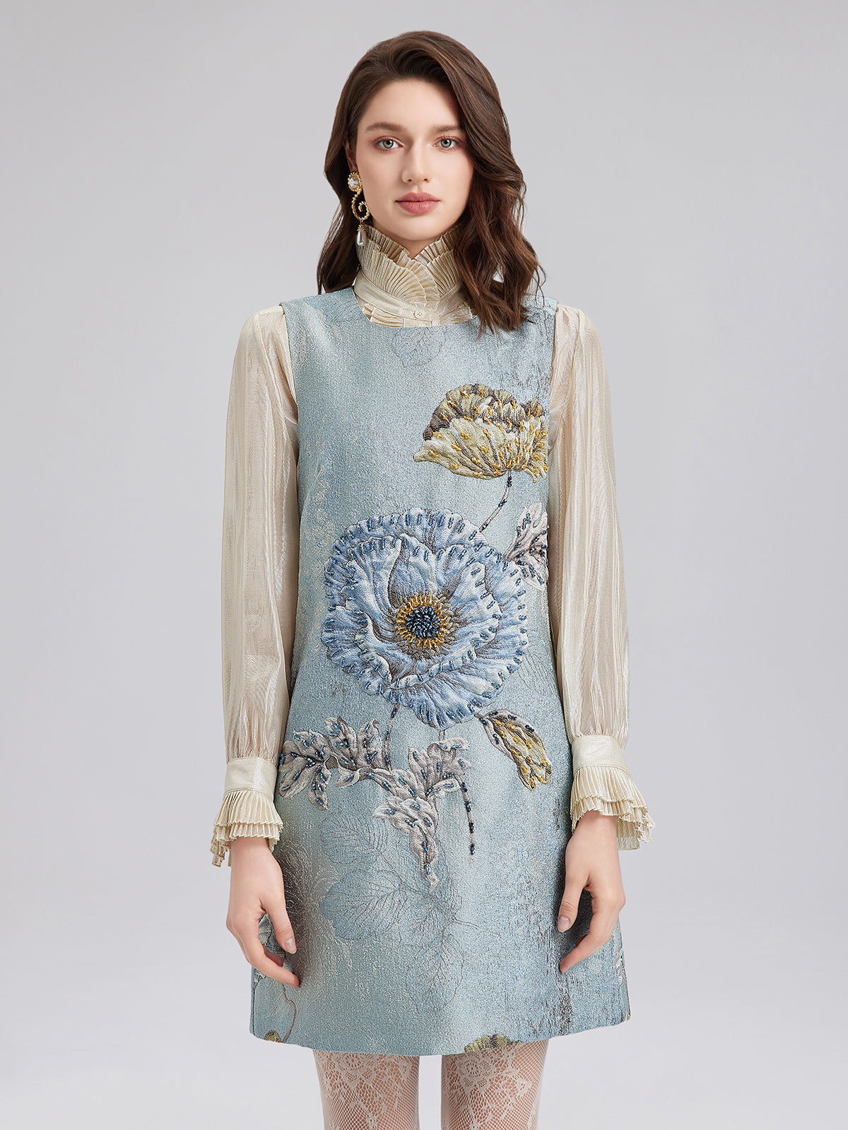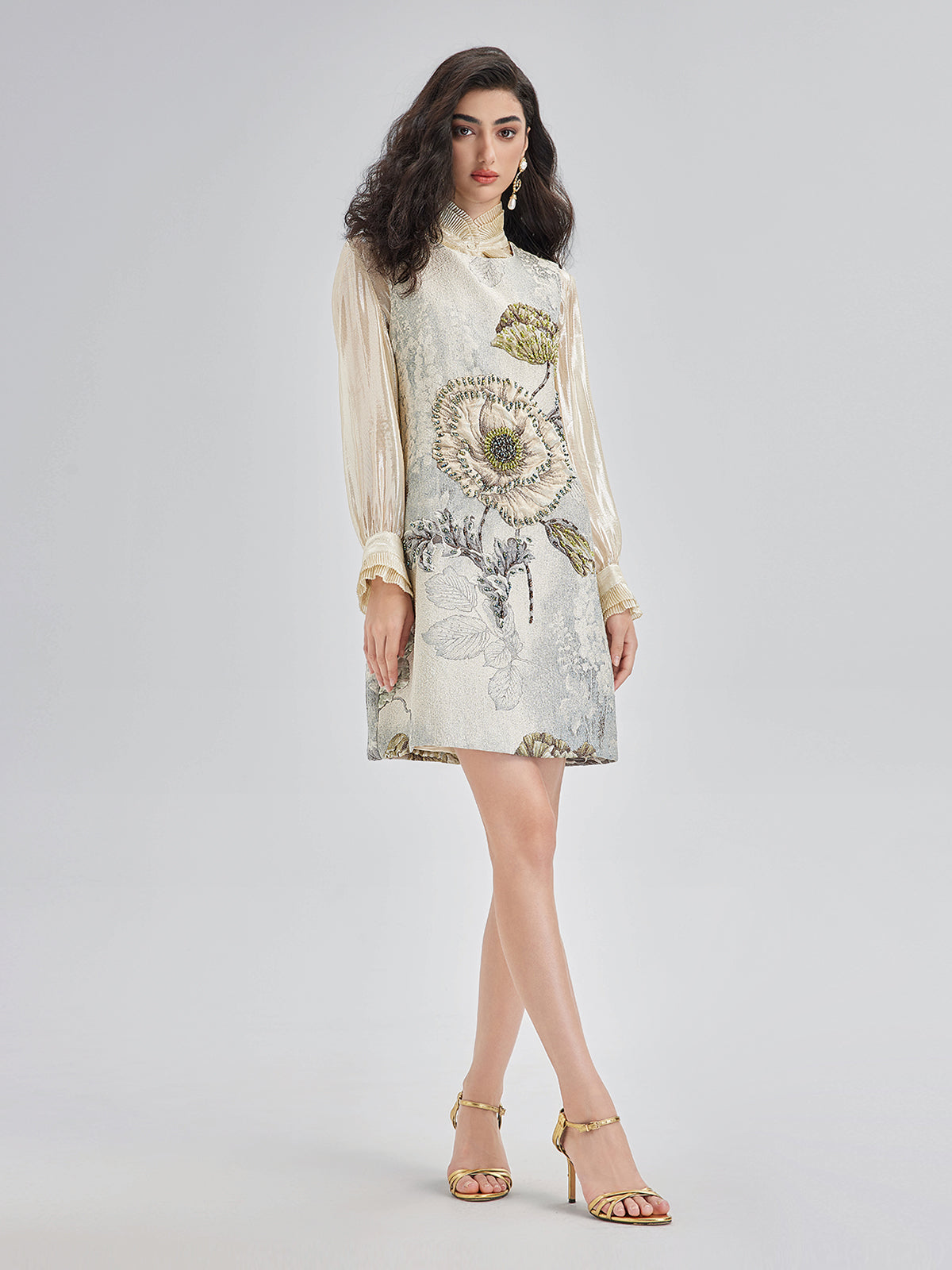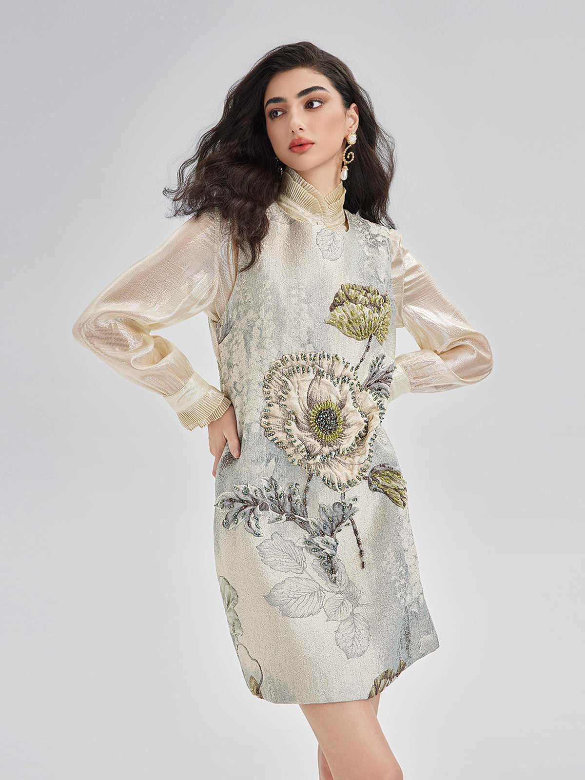 El Yapımı 3 Boyutlu Çiçekli Boncuklu Elbise