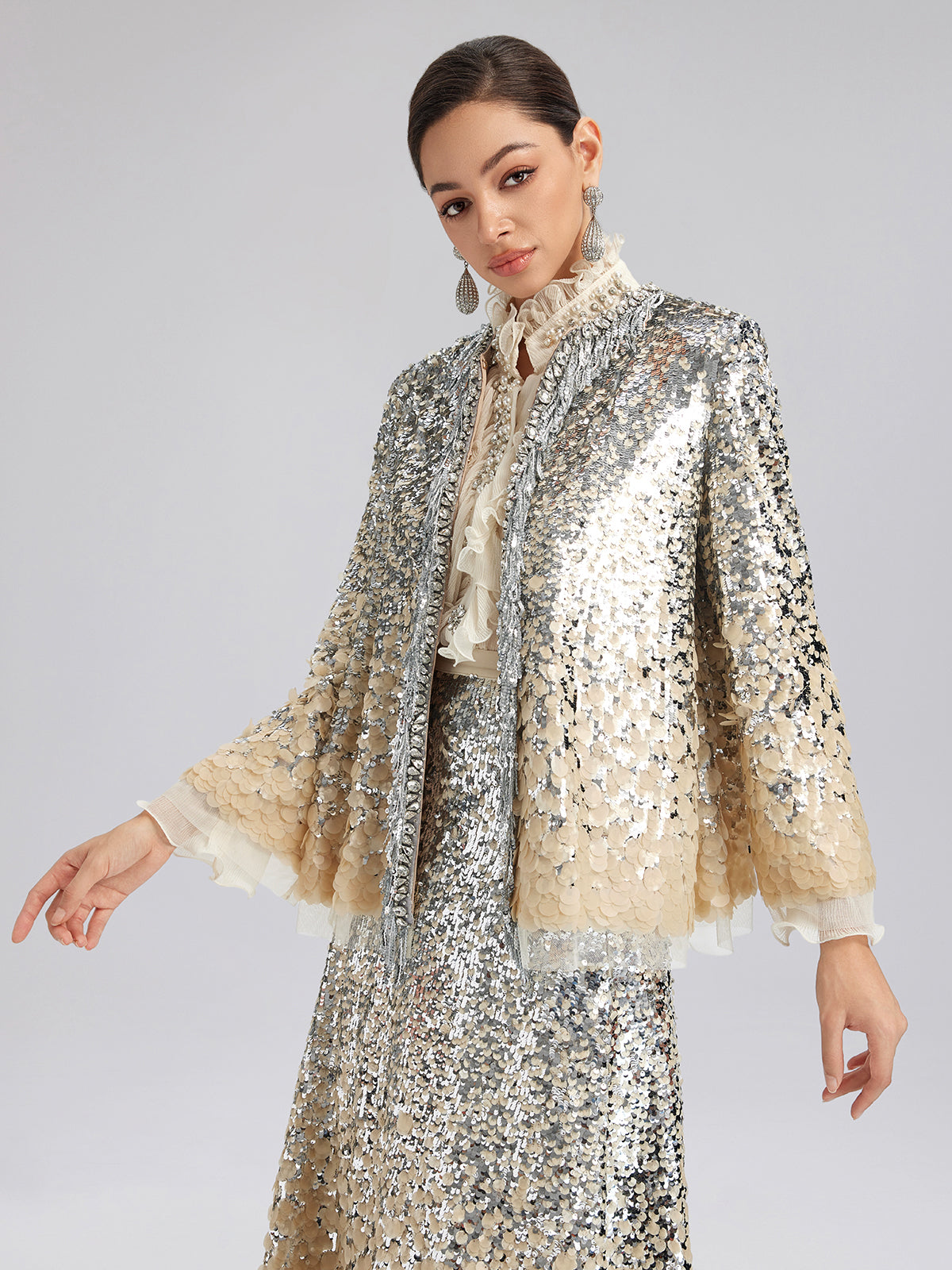 Lüks Boncuklu Gölgeli Püsküllü Ceket
