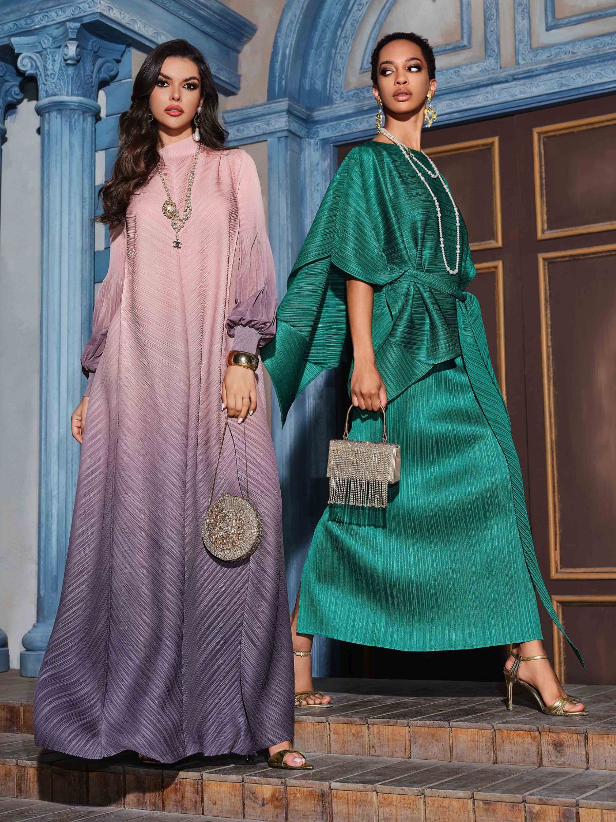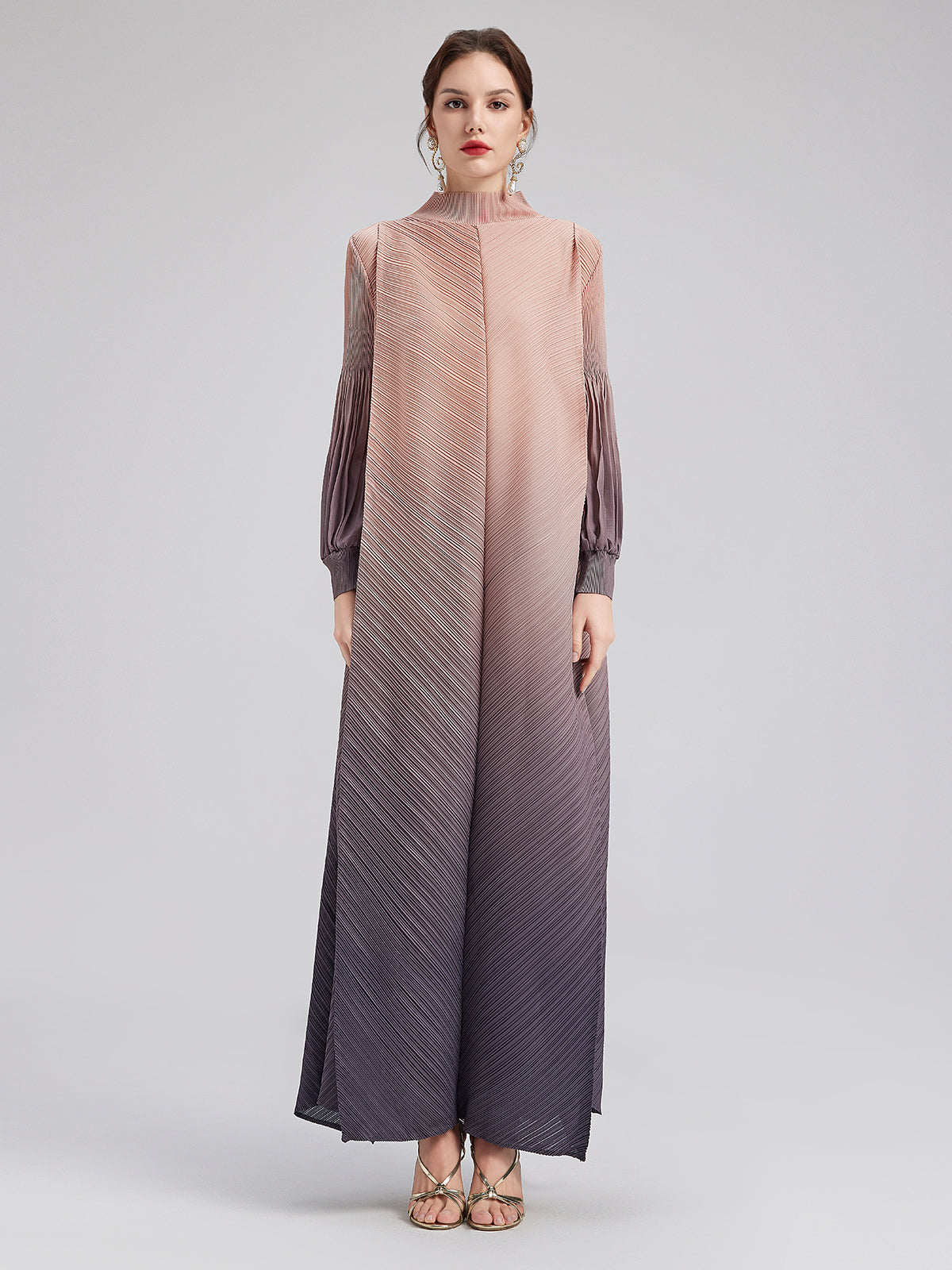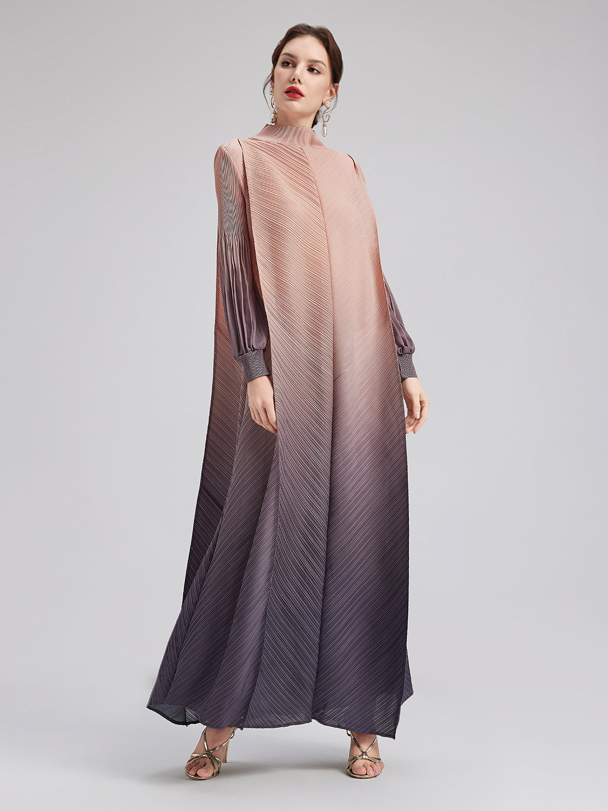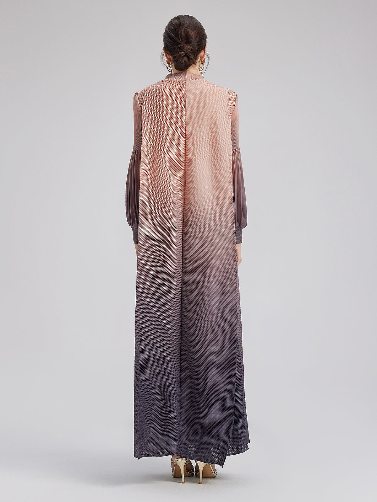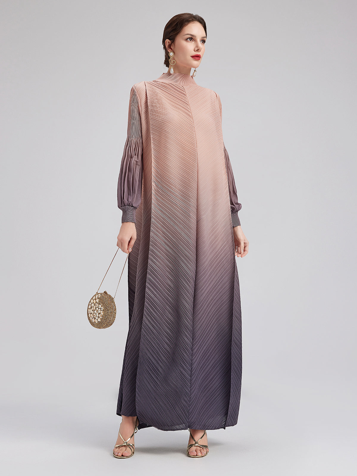 Romantik Renk Geçişli Pileli Mimari Elbise
