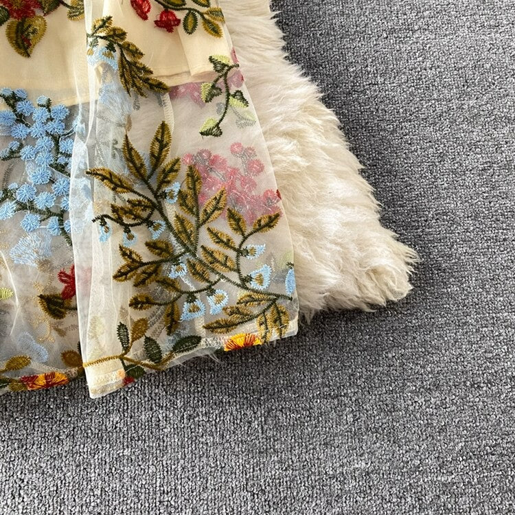 WOMEN SLEEVELESS SPARKLE FLOWER EMBROIDERY DRESS